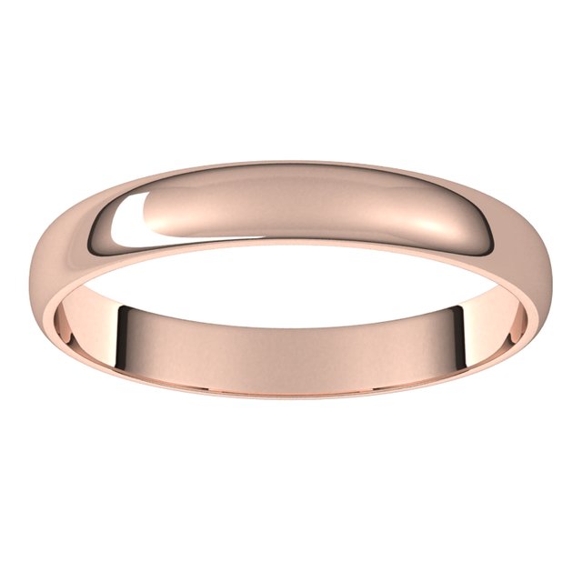 10K Rose Gold Half Round Ultra-Light Wedding Band, 3 mm Wide